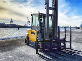 Der neue EFG 5 hebt bis zu fünf Tonnen und steigert die Umschlagleistung um bis zu 15 Prozent. Mit moderner Antriebstechnik und Assistenzsystemen setzt Jungheinrich auf Sicherheit und Effizienz im Mehrschichtbetrieb.